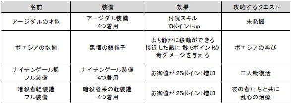例えば、「ローブ」や「バンテージ」ではアビリティが発動しません。